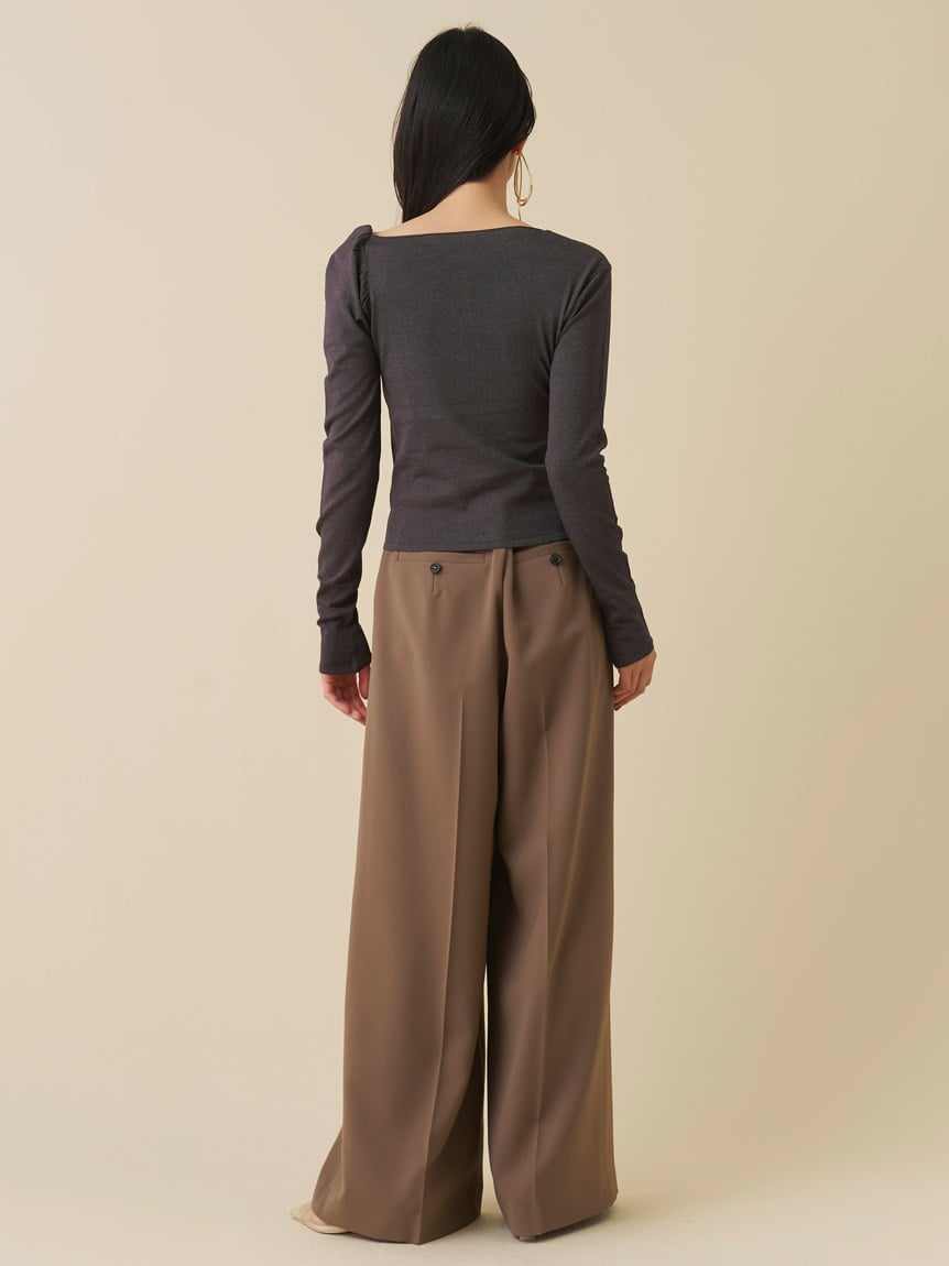 雖然荷葉褶量感十足,領口仍大方敞開,帶出摩登俐落的印象。