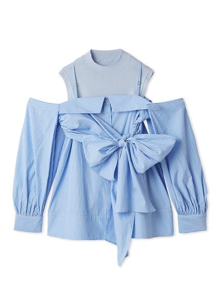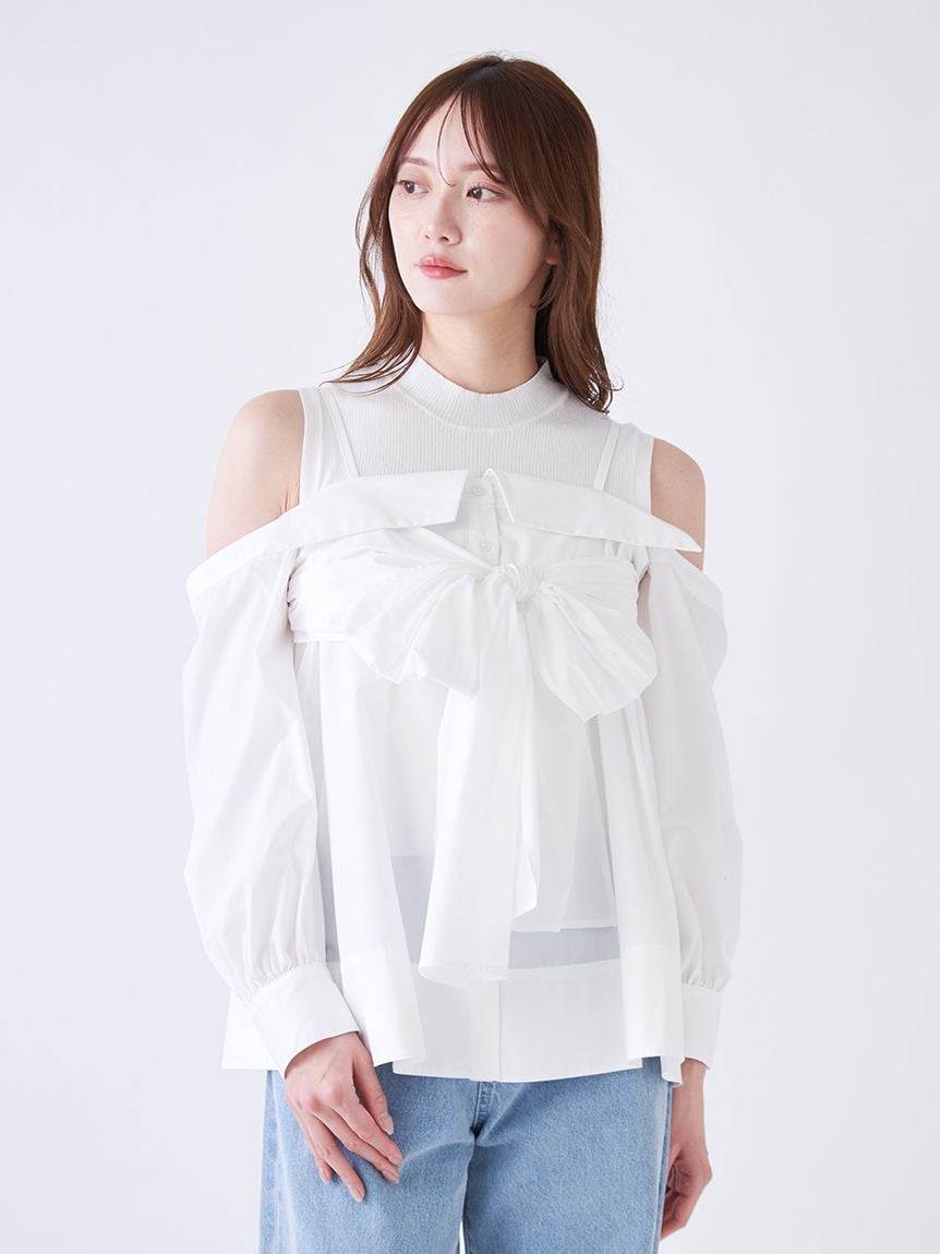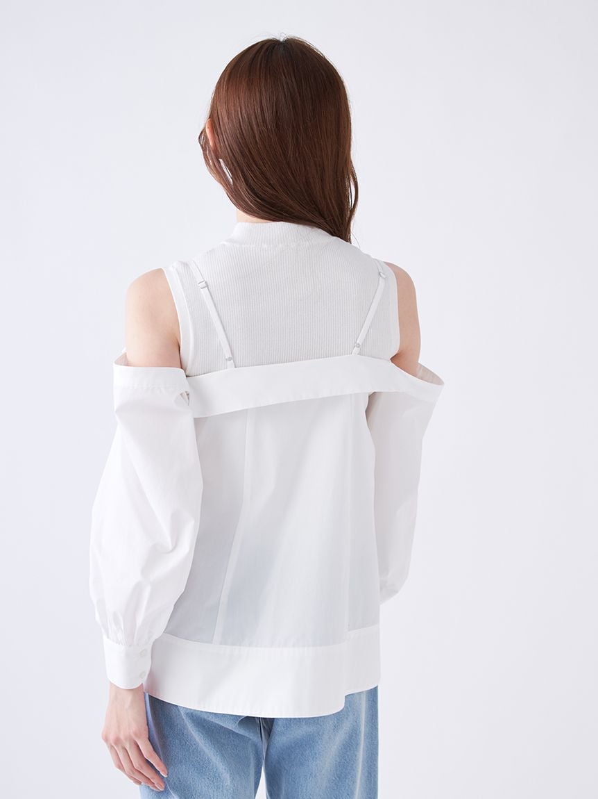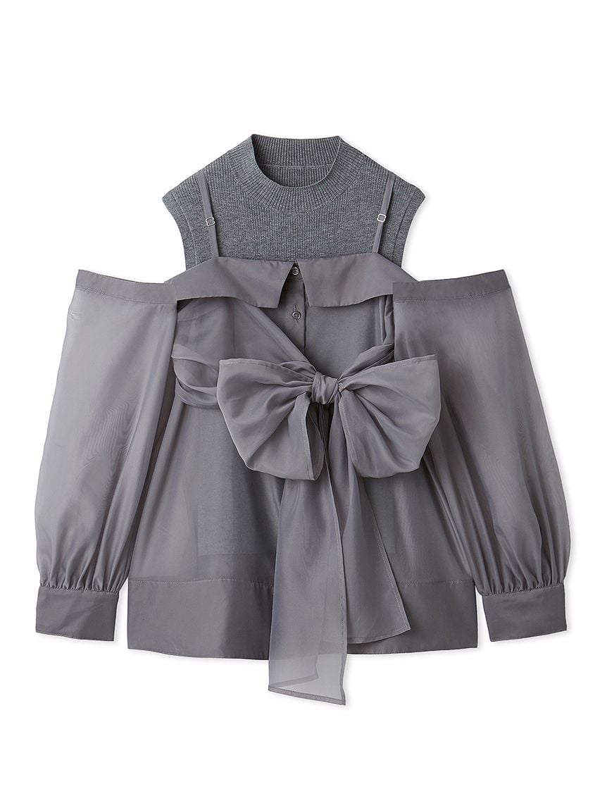 【華麗感的露肩設計襯衫與無袖針織上衣套組】