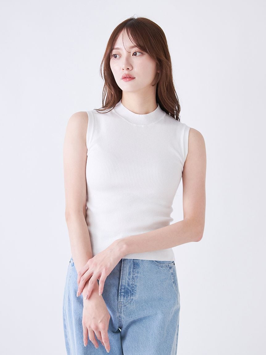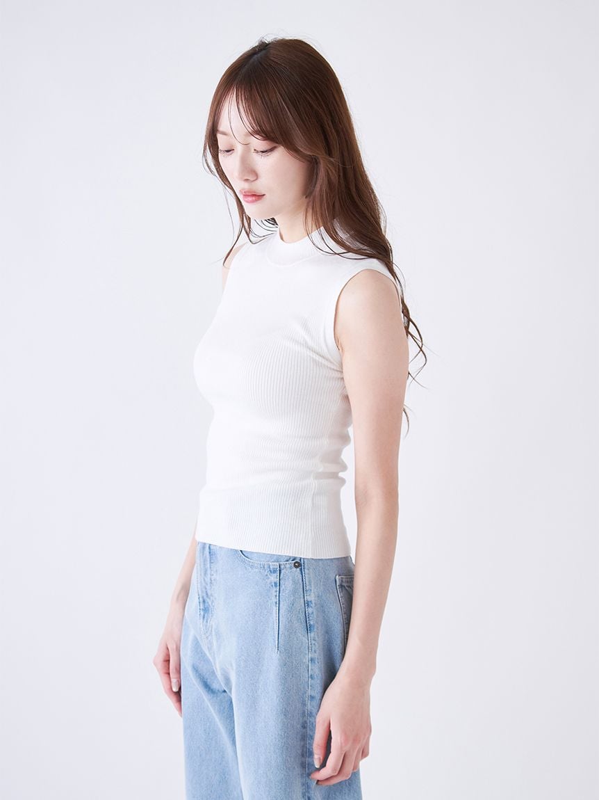 套組包含露肩風格的長版襯衫與緊身短高領無袖針織衫,兩者皆可單獨穿著。