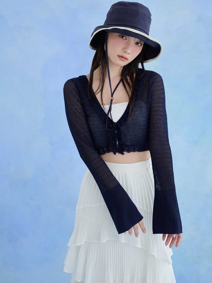 以輕盈花紋針織完成的針織開襟衫上市。