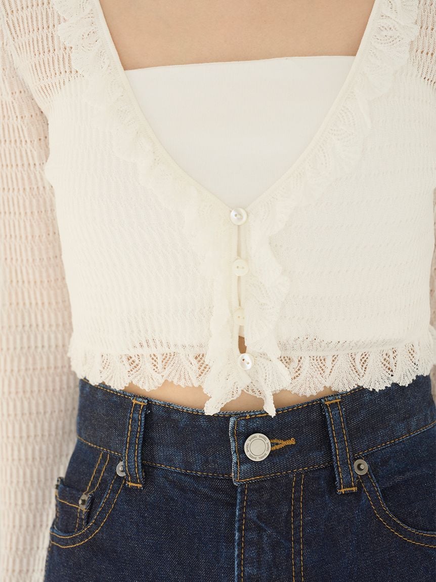 【人氣短版多色透視針織開襟衫】