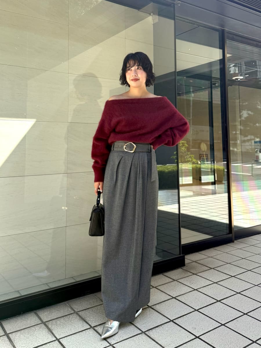 3WAY蝴蝶結一字領針織上衣 FWNT255105