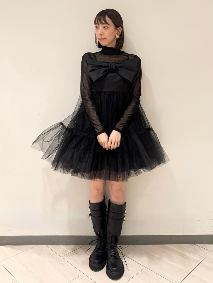前綁帶蝴蝶結網紗連身裙 LWFO261086